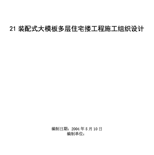 21装配式大模板多层住宅搂工程施工组织设计