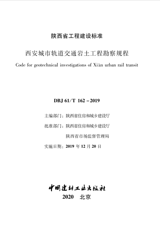 订单名称:DBJ61T162-2019西安城市轨道交通岩土勘察规程