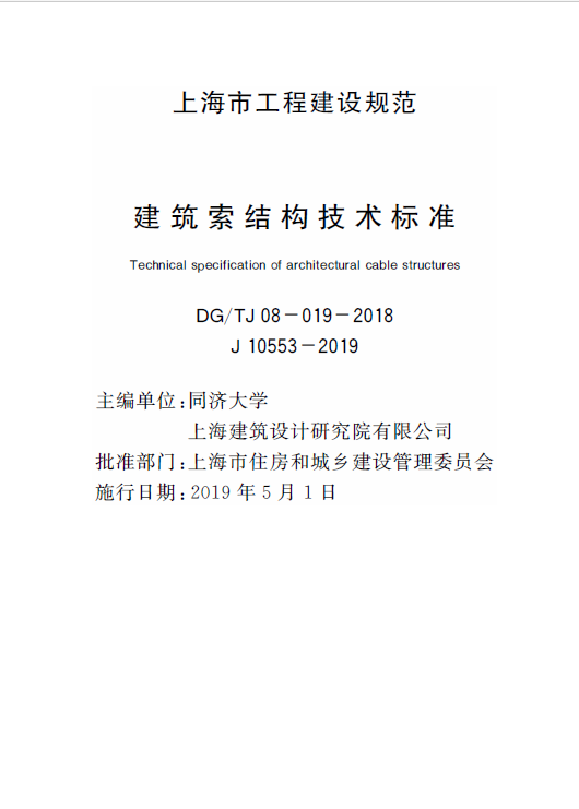 DG∕TJ08-019-2018建筑索结构技术标准