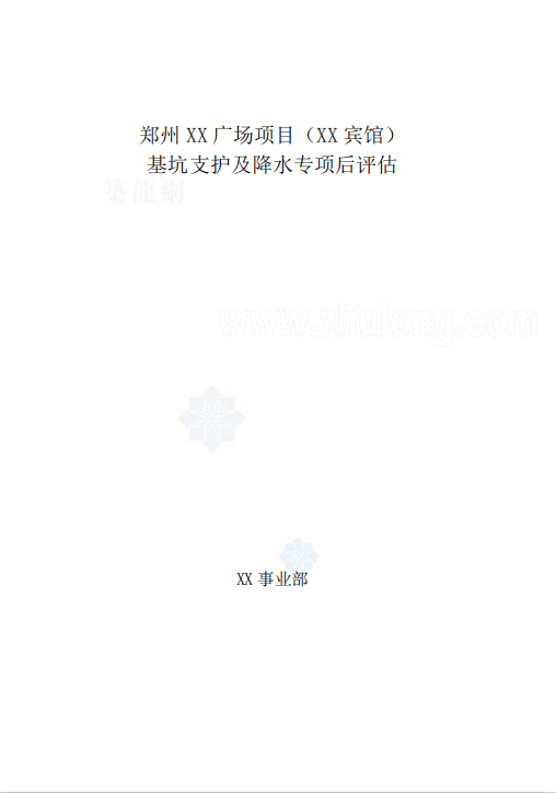 订单名称:[郑州]会展中心基坑支护及降水专项工程成本控制报告(2014年3月)