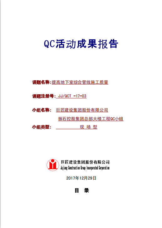 订单名称:[QC成果报告]提高地下室综合管线施工质量