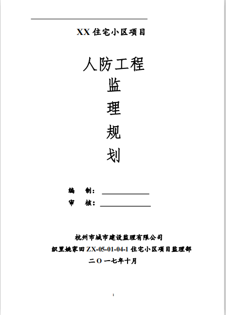 订单名称:住宅小区人防工程监理规划(含图表)