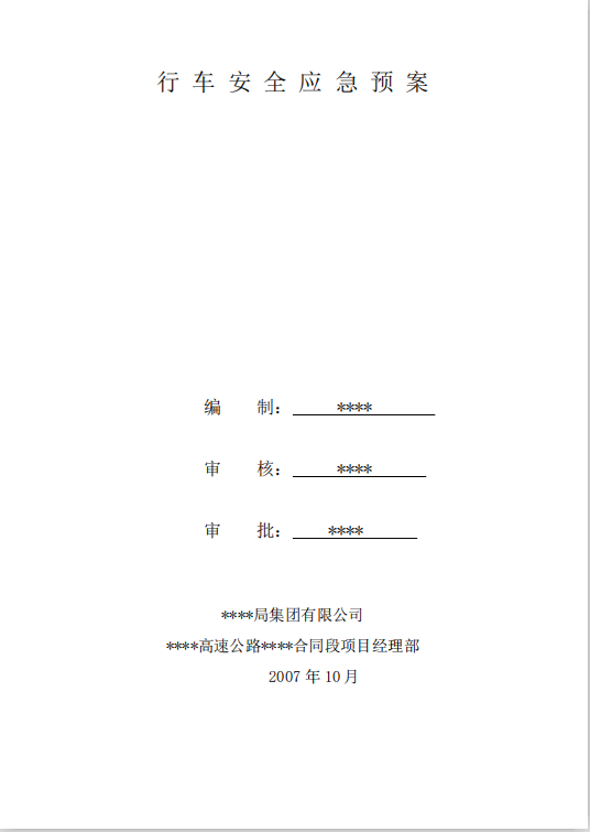 订单名称:行车安全应急预案