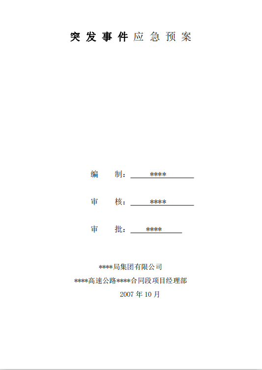 订单名称:突发事件应急预案