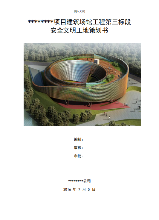 建筑场馆工程安全文明工地策划书(含图表)