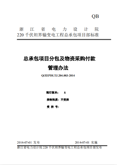 订单名称:总承包项目分包及物资采购付款管理办法