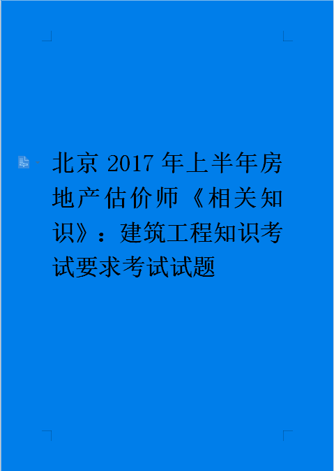 北京2017年上半年房地产估价师《相关知识》:建筑工程知识考试要求考试试题