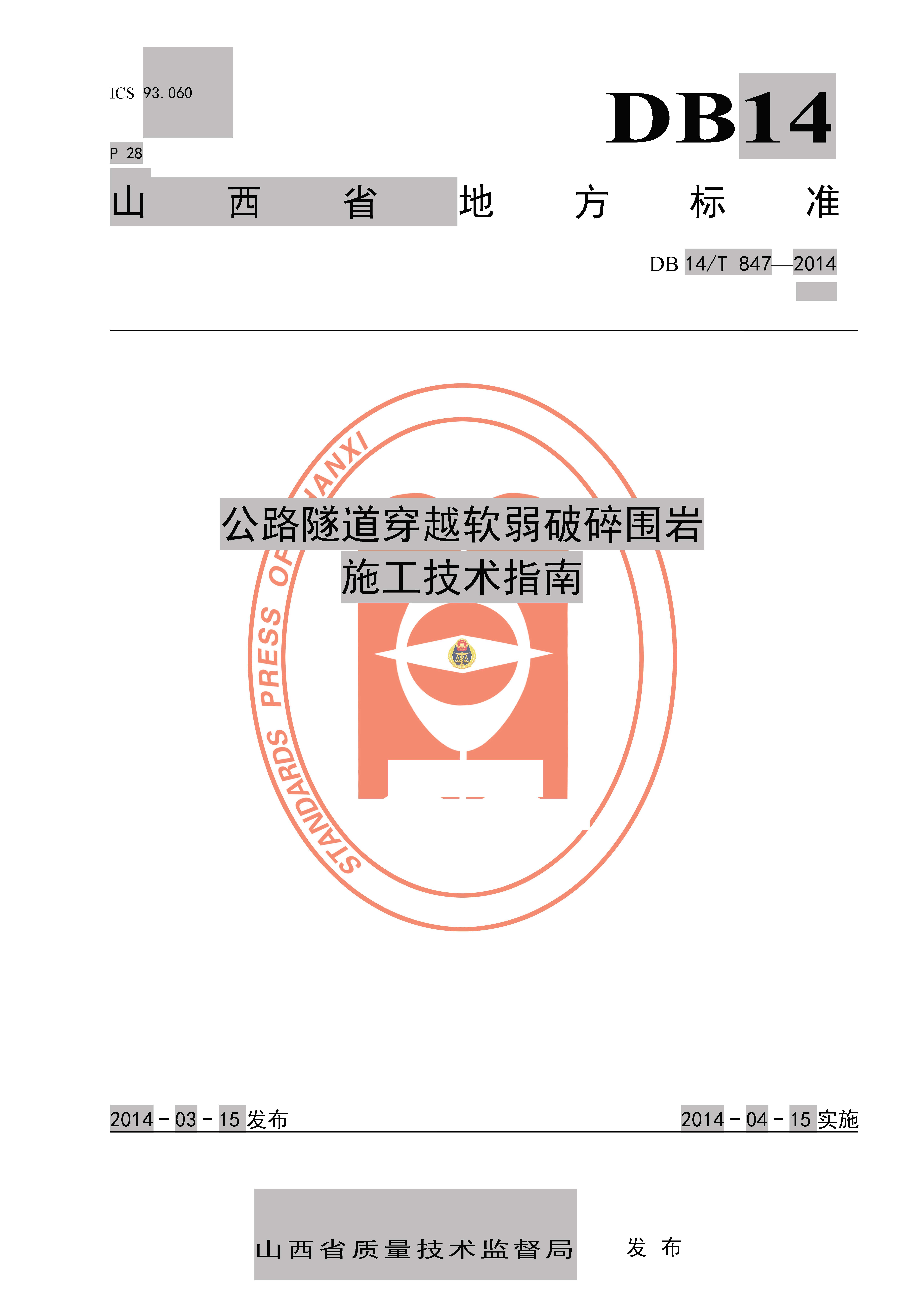订单名称:DB14∕T_847-2014_公路隧道穿越软弱破碎围岩施工技术指南