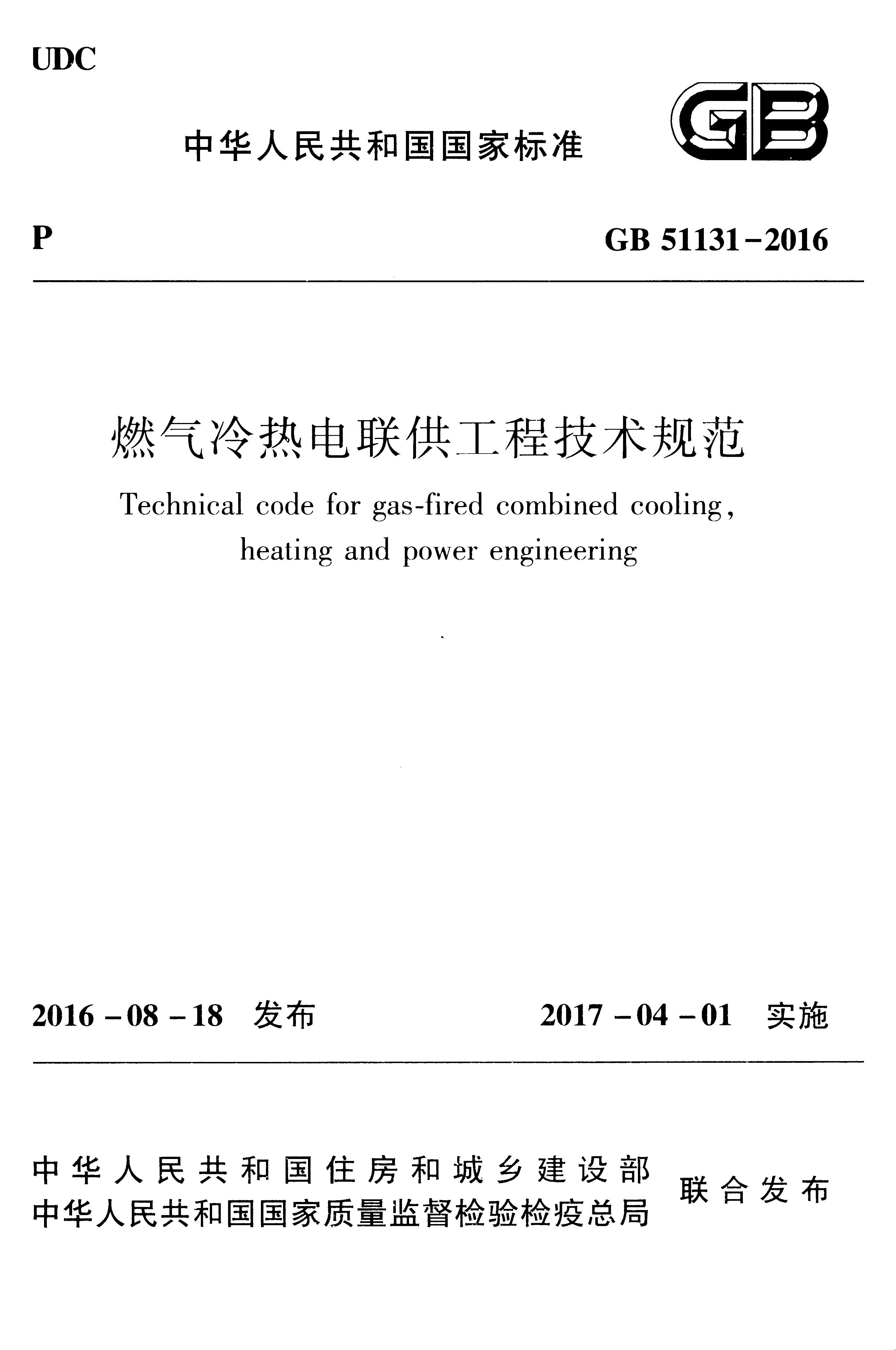 订单名称:GB511312016燃气冷热电联供工程技术规范附条文