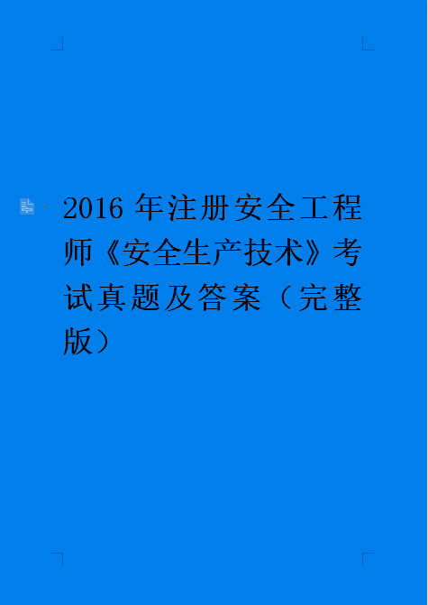 订单名称:2016年注册安全工程师《安全生产技术》考试真题及答案(完整版)