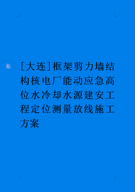 订单名称:[大连]框架剪力墙结构核电厂能动应急高位水冷却水源建安工程定位测量放线施工方案
