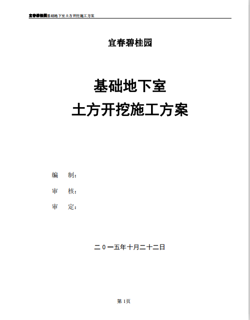 订单名称:[宜春市]碧桂园基础地下室土方开挖施工方案