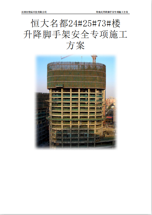 订单名称:[武汉]高层住宅升降脚手架安全专项施工方案