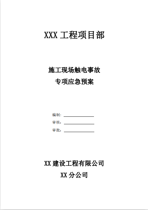 订单名称:施工现场触电事故应急救援预案