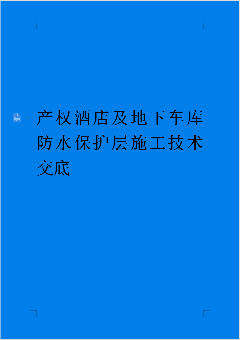 订单名称:产权酒店及地下车库防水保护层施工技术交底
