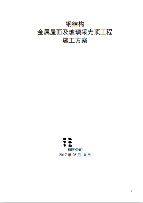 钢结构金属屋面玻璃采光顶工程施工方案2017