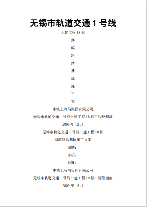 订单名称:[无锡]地铁工程深基坑专项施工方案