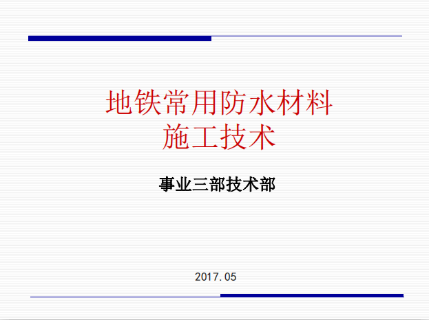 2017地铁常用防水材料施工技术培训讲义PPT