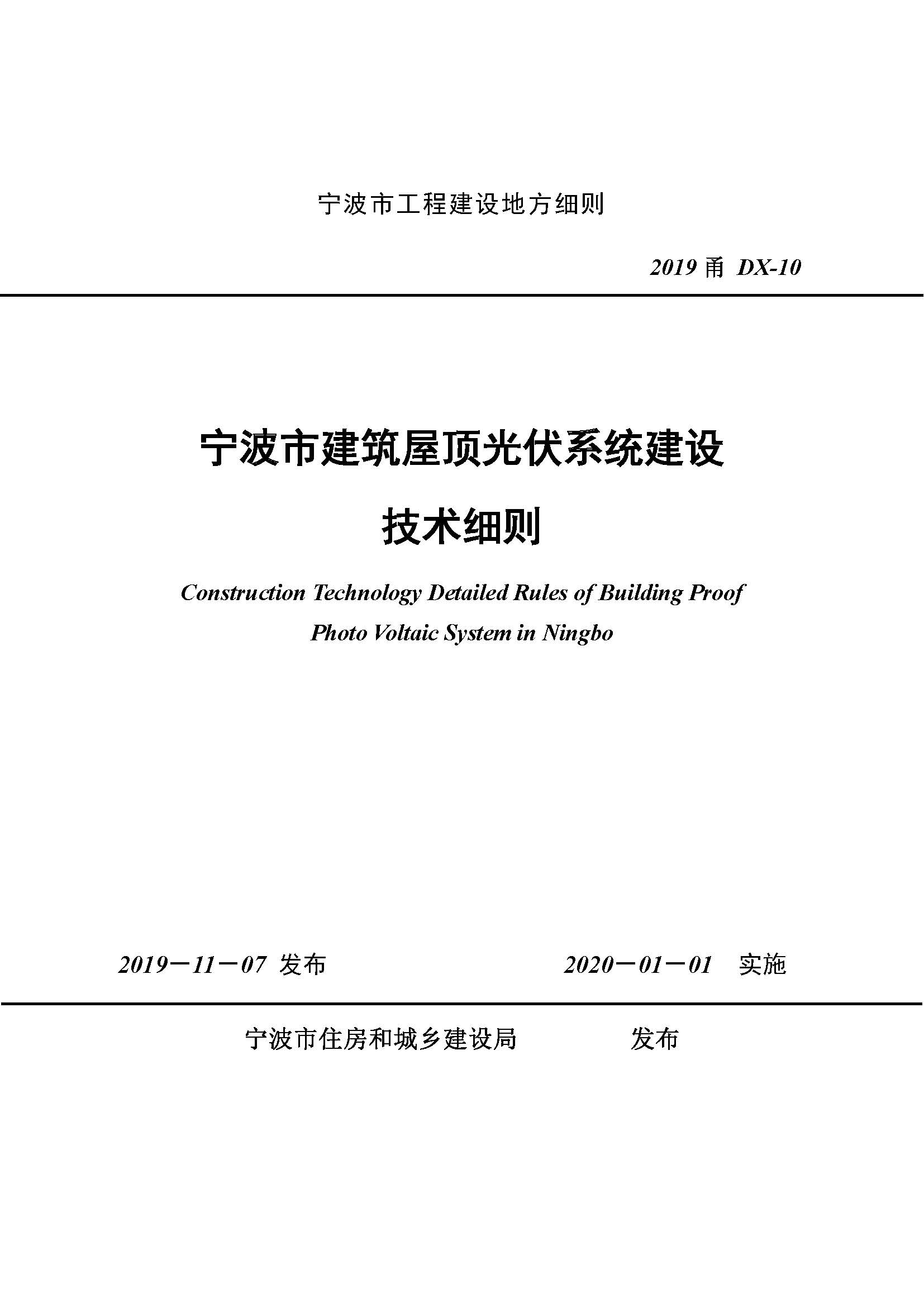 2019甬DX-10-宁波市-建筑屋顶光伏系统建设技术细则