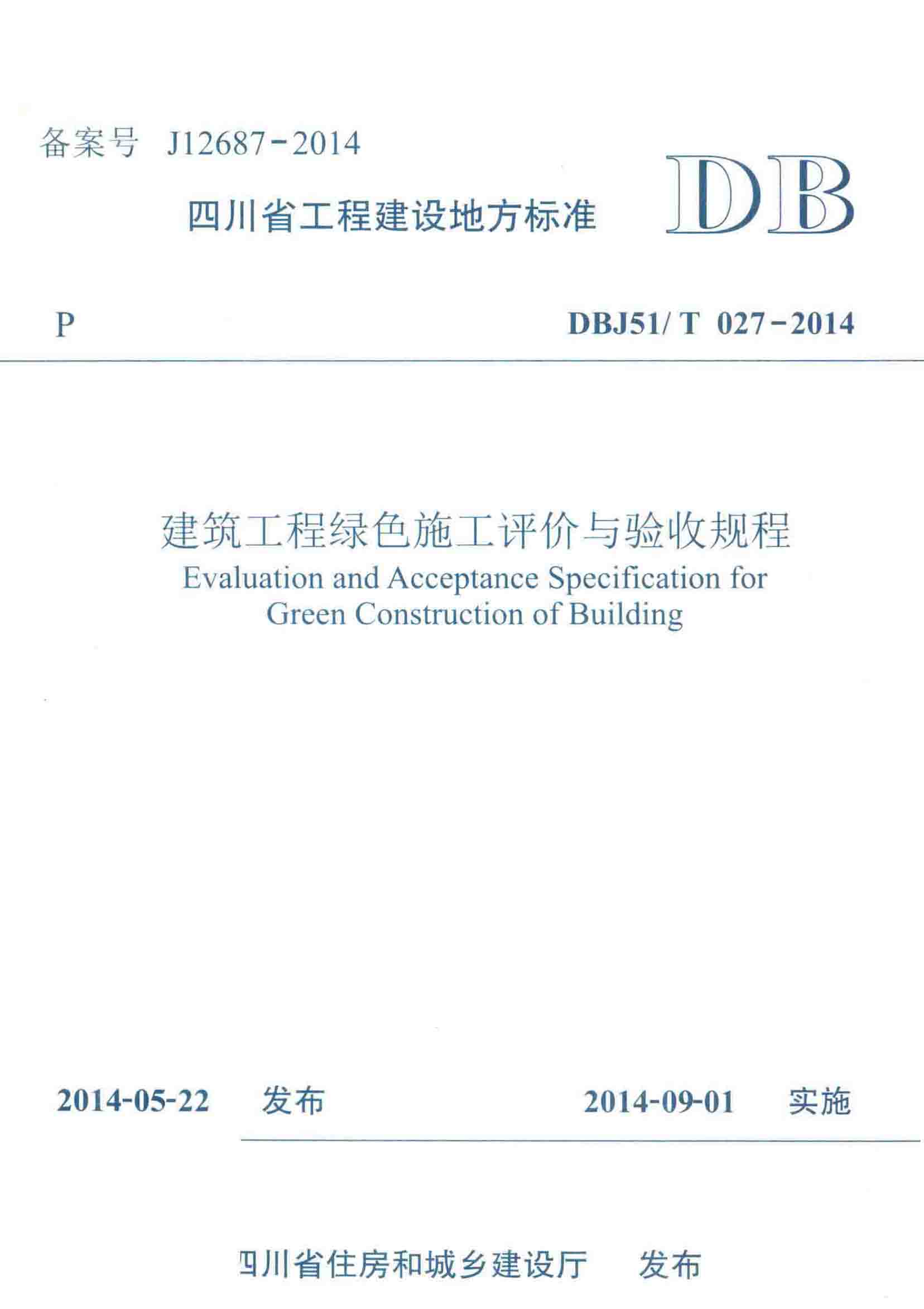 订单名称:DBJ51T_027-2014_建筑工程-绿色施工-评价与验收规程