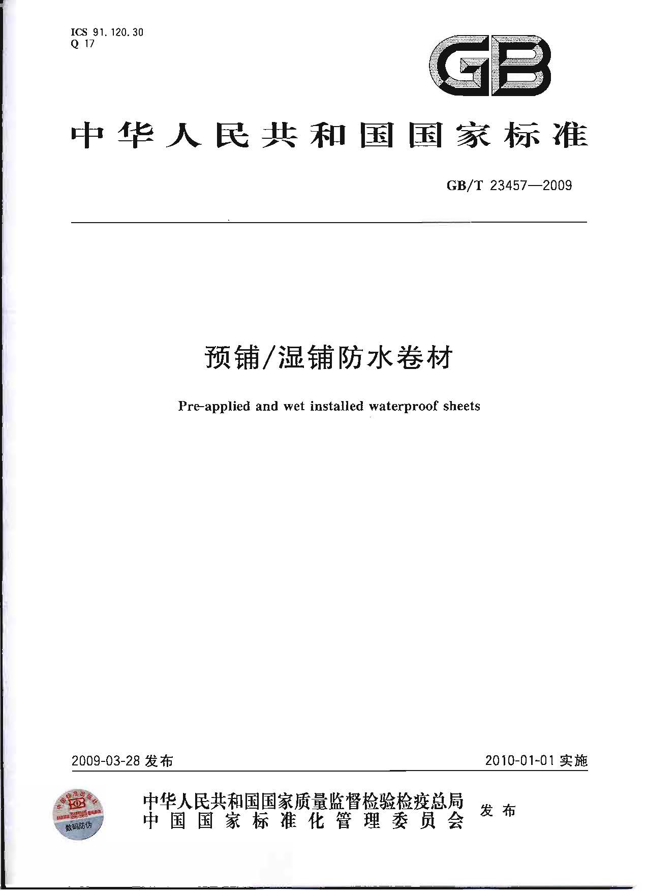 GBT23457-2017_预铺-湿铺-防水卷材