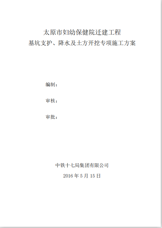 订单名称:妇幼保健院基坑支护降水及土方开挖施工方案
