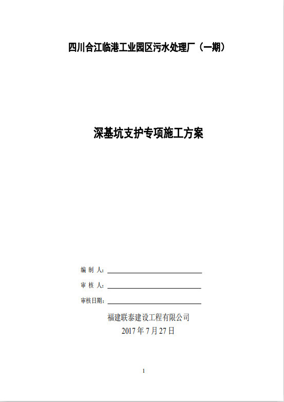 订单名称:污水处理厂深基坑支护安全专项施工方案