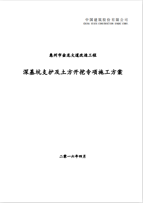 订单名称:综合管廊深基坑支护及土方开挖专项施工方案