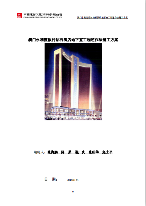 订单名称:澳门永利酒店地下逆作法施工方案
