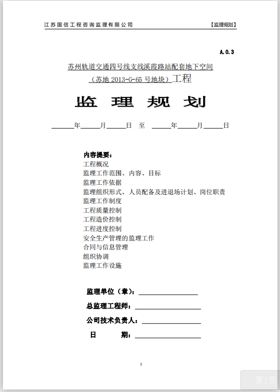 订单名称:[苏州]地下空间工程监理规划(73页)