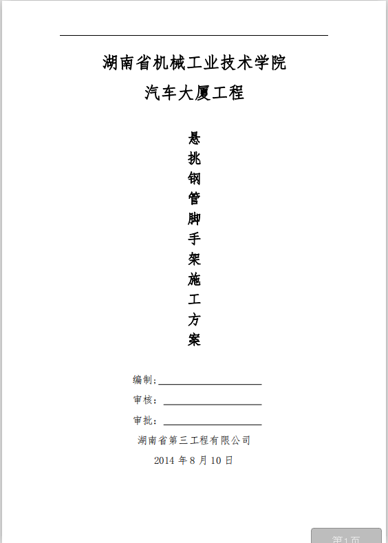 订单名称:大厦悬挑钢管脚手架施工方案专家论证版