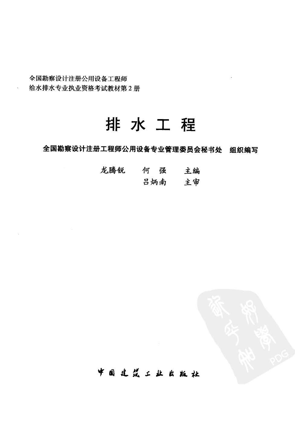 订单名称:全国勘察设计注册公用设备工程师给水排水专业执业资格考试教材:排水工程(第2册)