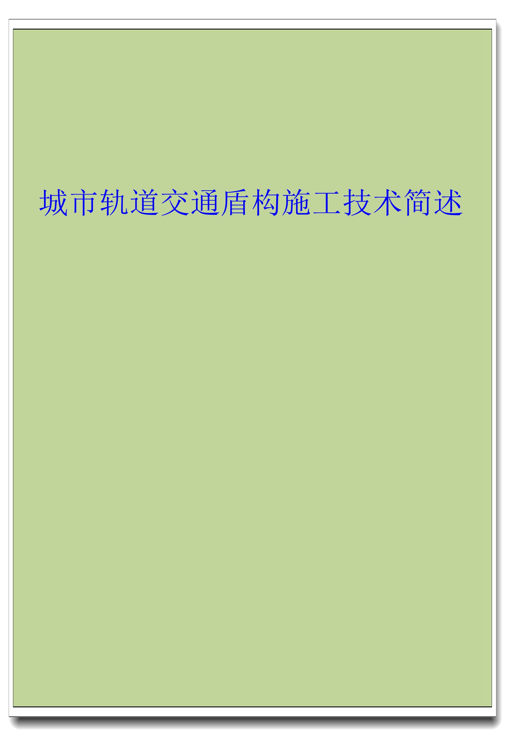 订单名称:城市轨道交通盾构施工技术简述