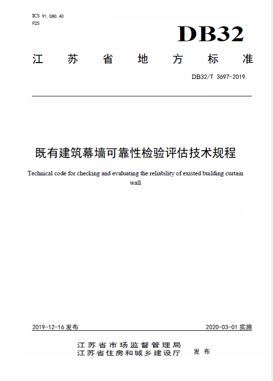订单名称:DB32T3697-2019既有建筑幕墙可靠性检验评估技术规程