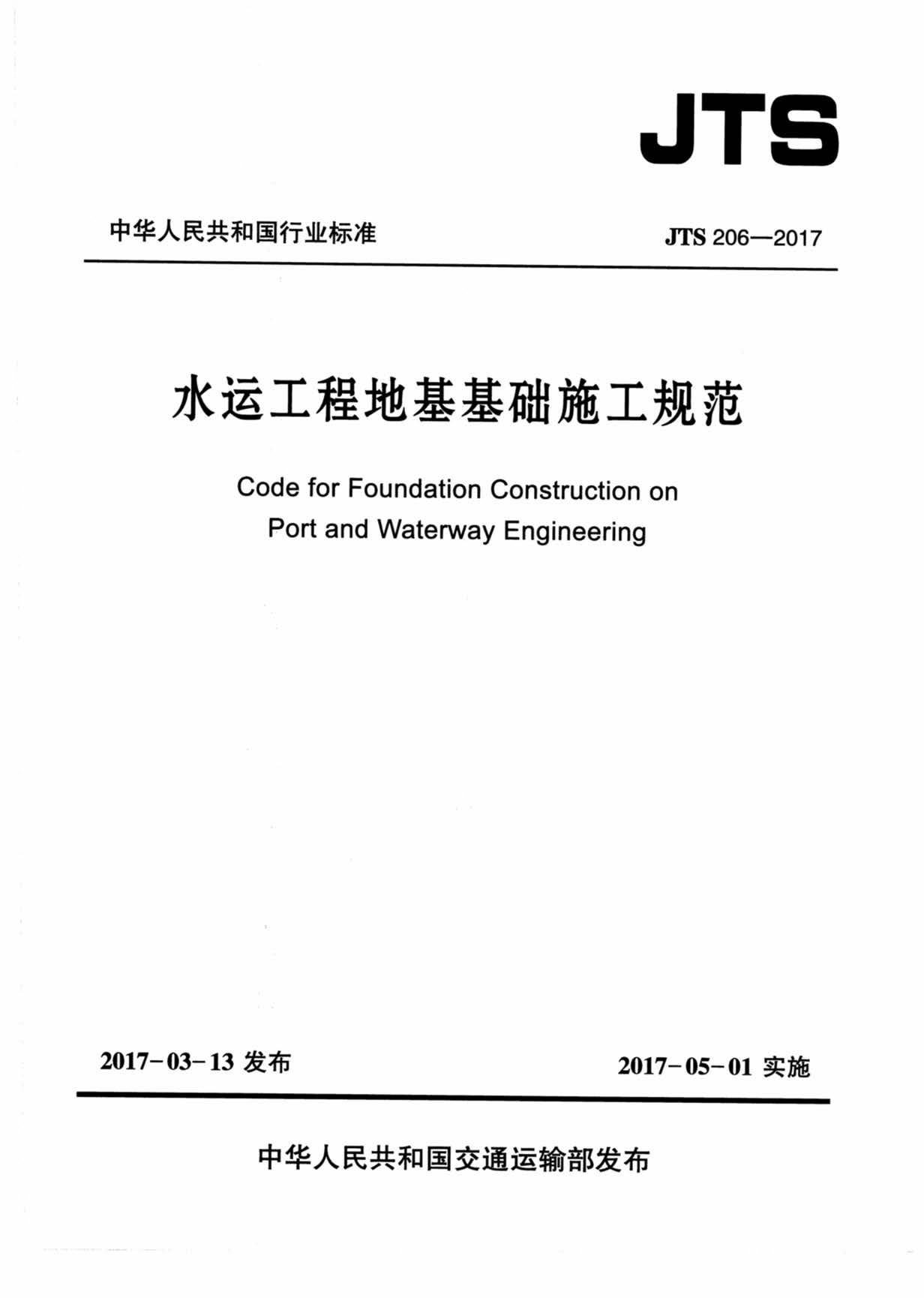 JTS206-2017水运工程地基基础施工规范