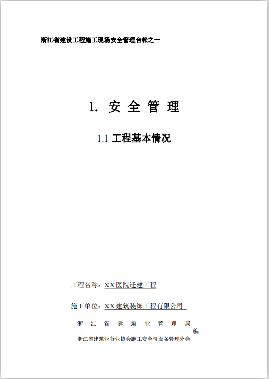 订单名称:医院迁建工程施工现场安全管理台帐(全套)