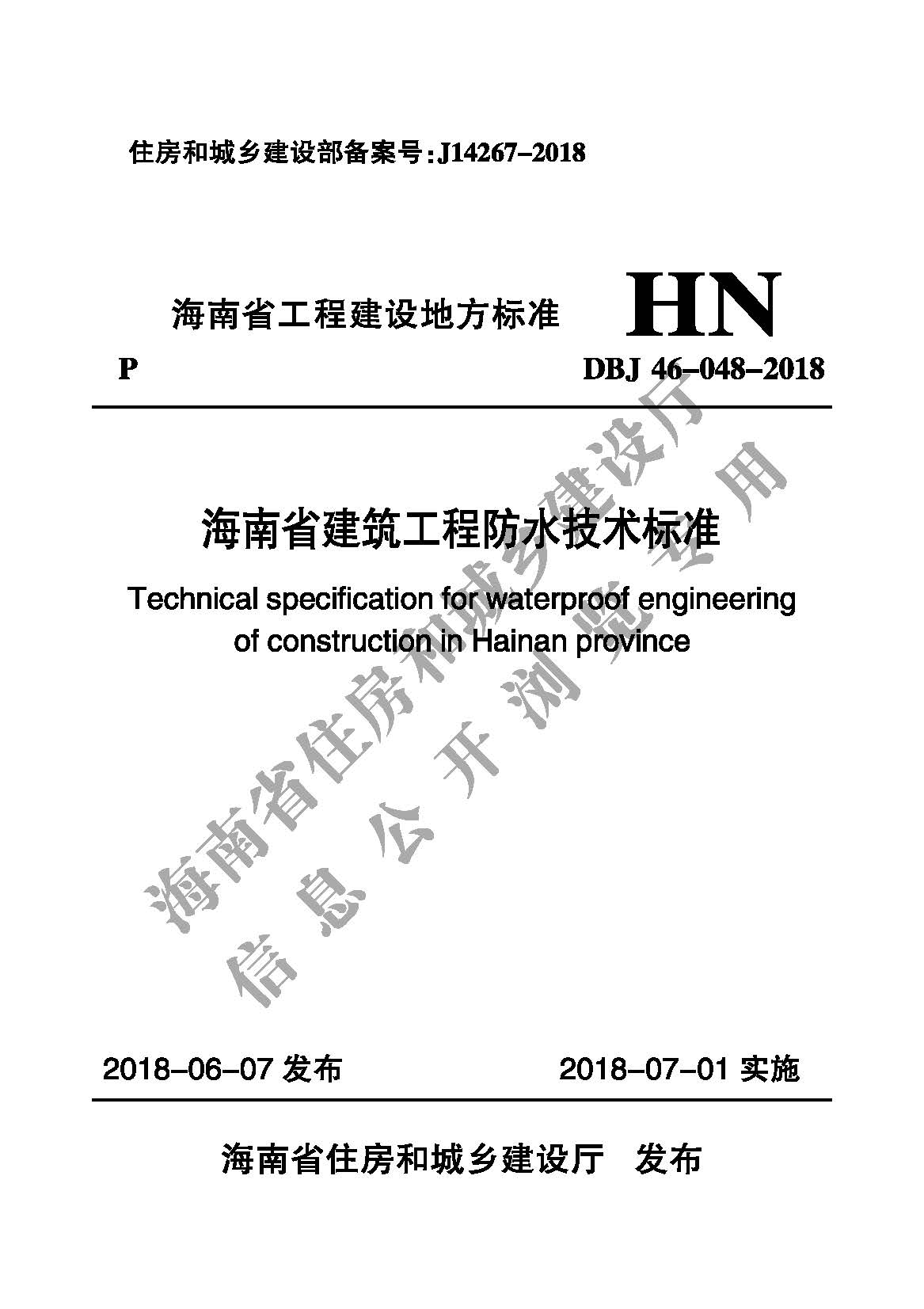 DBJ46-048-2018_海南省建筑工程防水技术标准