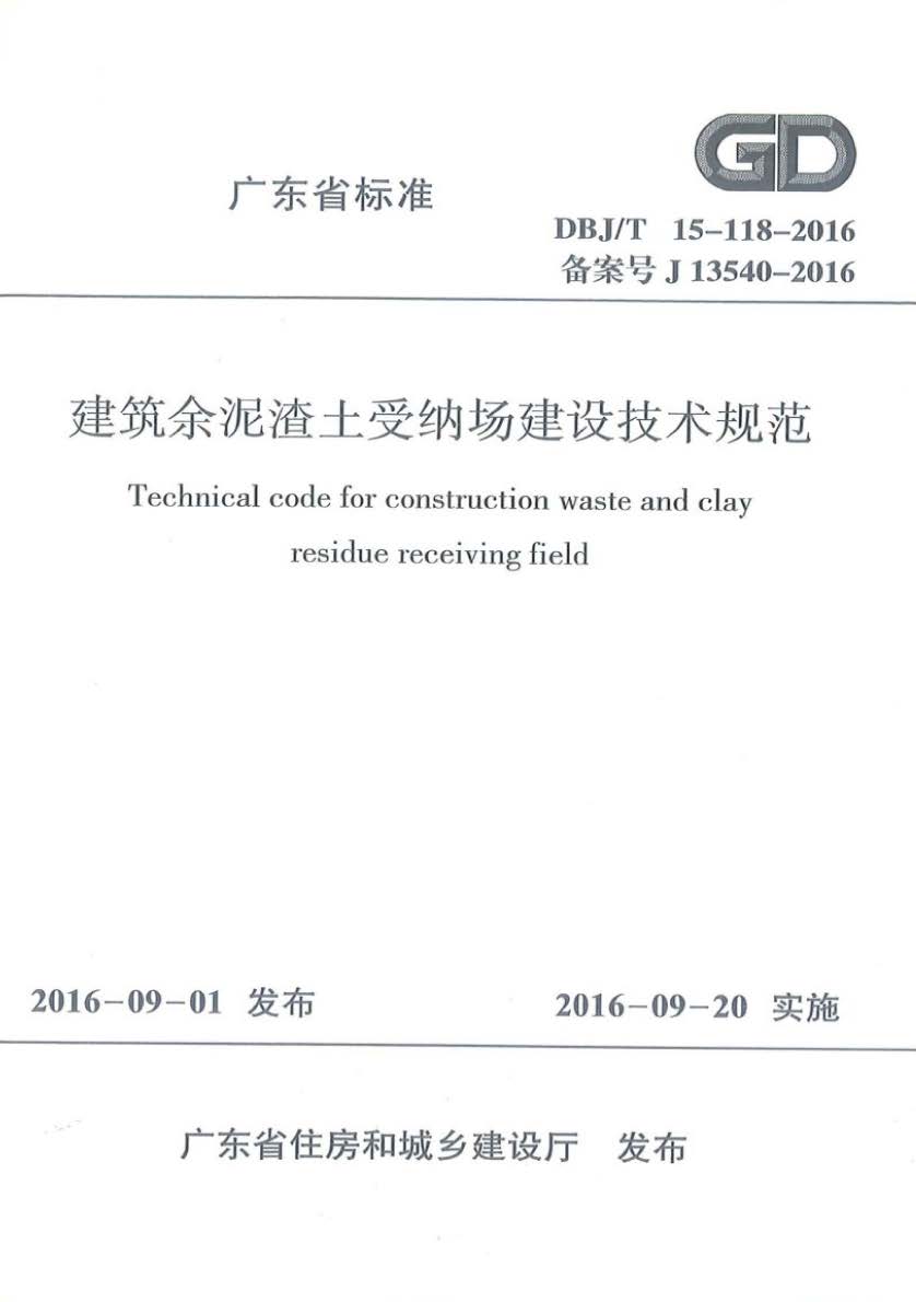 订单名称:DBJT_15-118-2016_建筑余泥渣土受纳场建筑技术规范