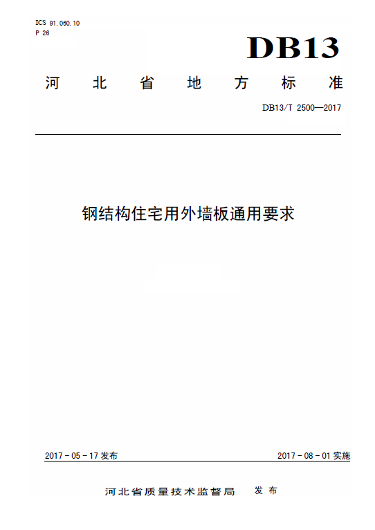 DB13∕T2500-2017钢结构住宅用外墙板通用要求