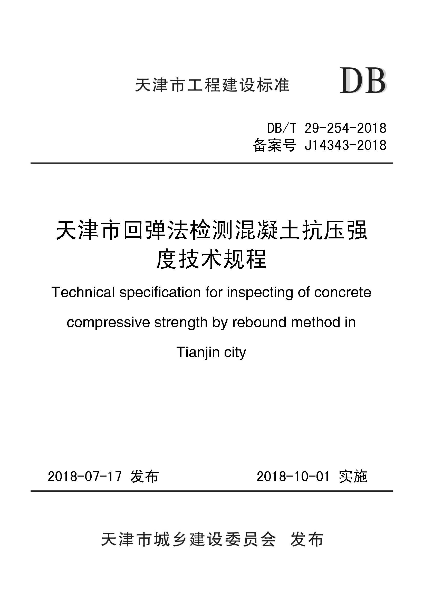 订单名称:DB∕T_29-254-2018_天津市回弹法检测混凝土抗压强度技术规程