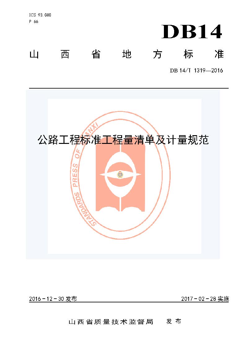 订单名称:DB14∕T_1319-2016_公路工程标准工程量清单及计量规范