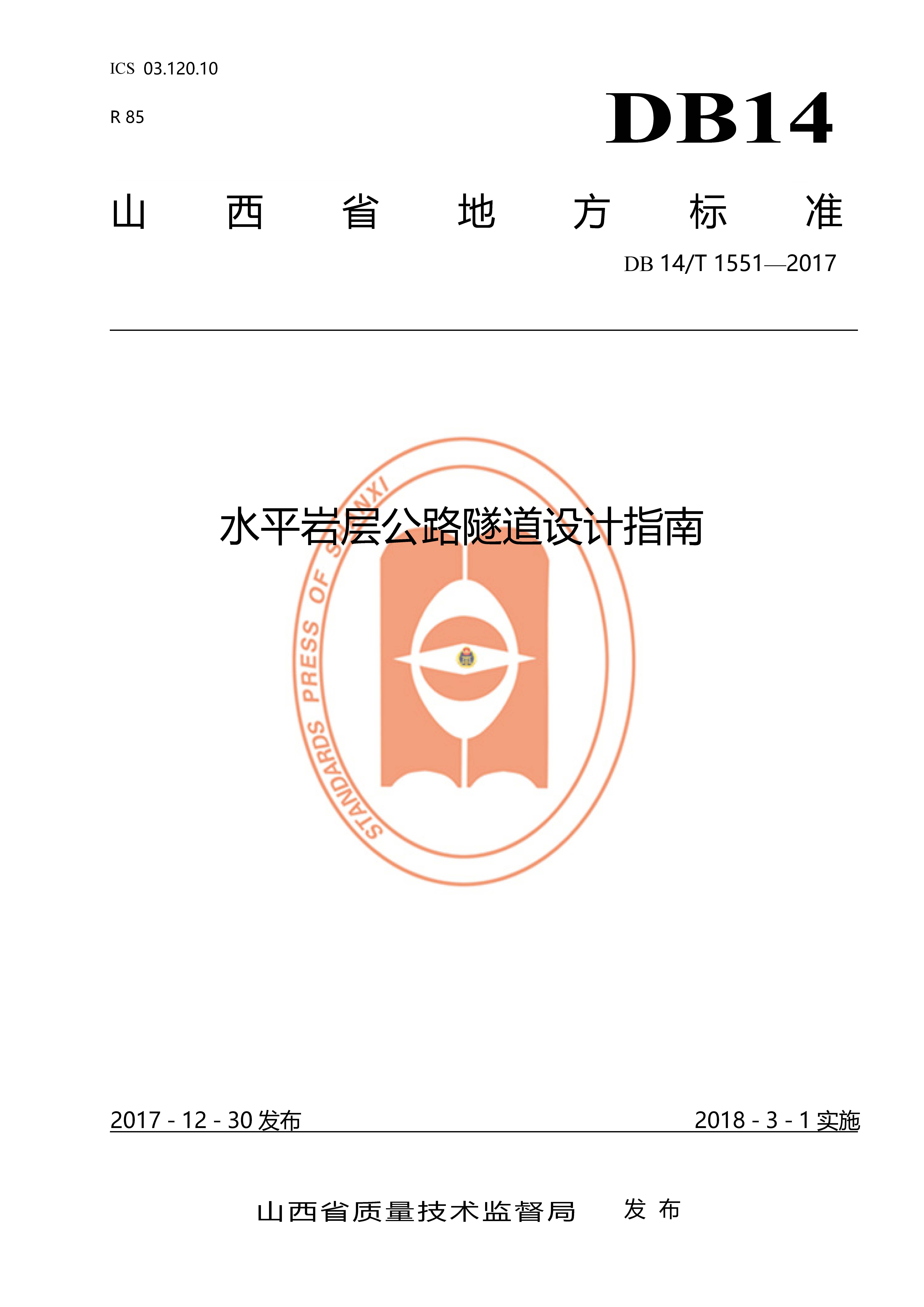 订单名称:DB14∕T_1551-2017_水平岩层公路隧道设计指南