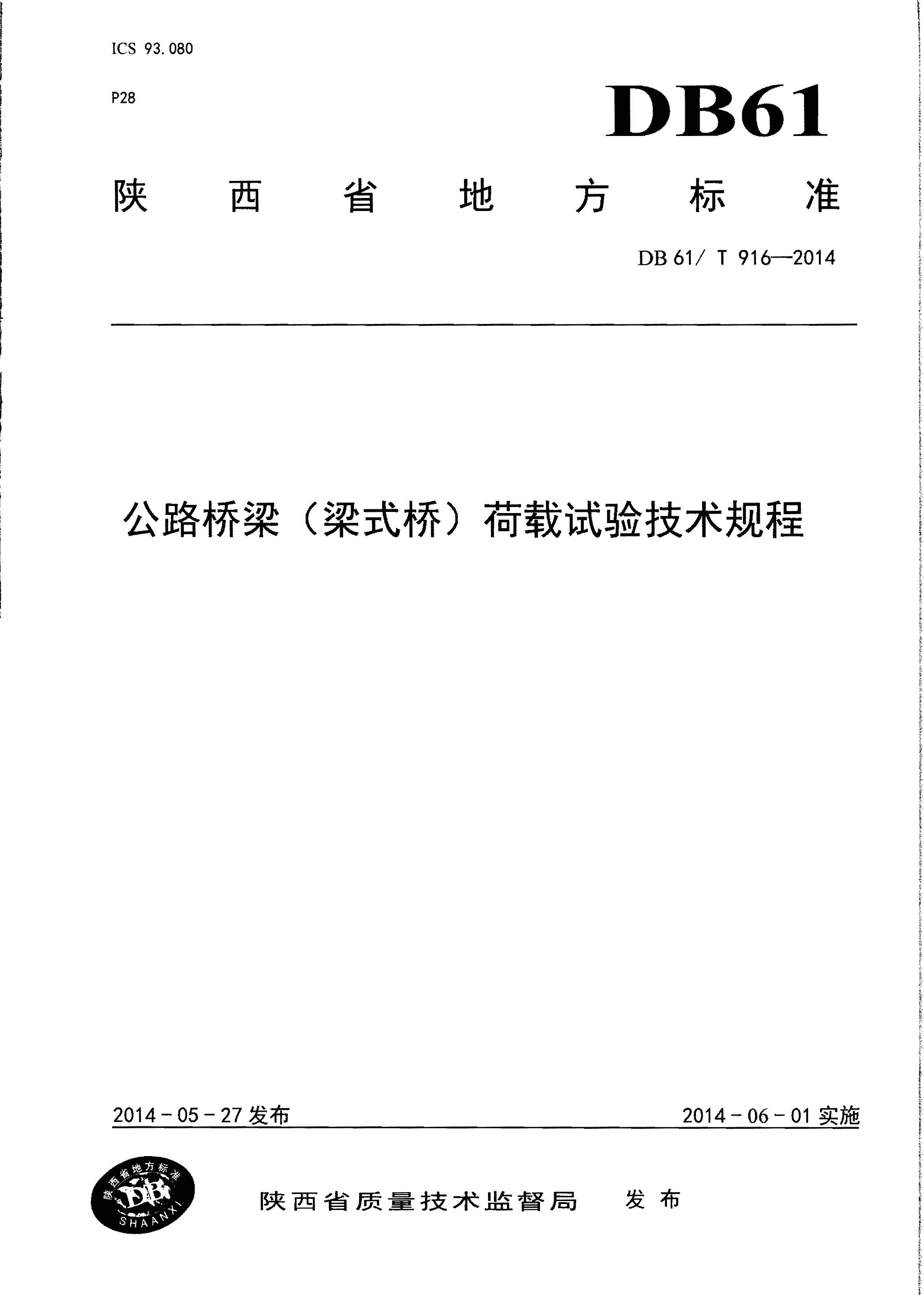 订单名称:DB61∕T_916-2014_公路桥梁(梁式桥)荷载试验技术规程