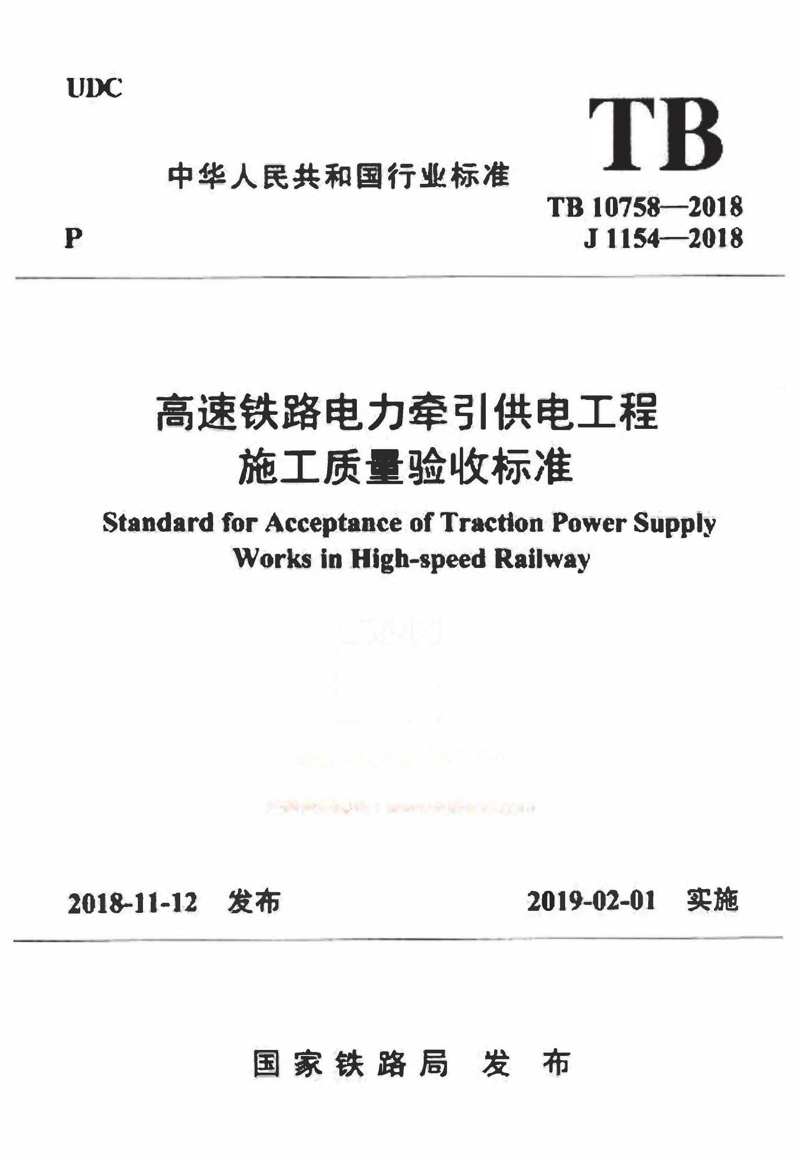 TB_10758-2018_高速铁路电力牵引供电工程施工质量验收标准