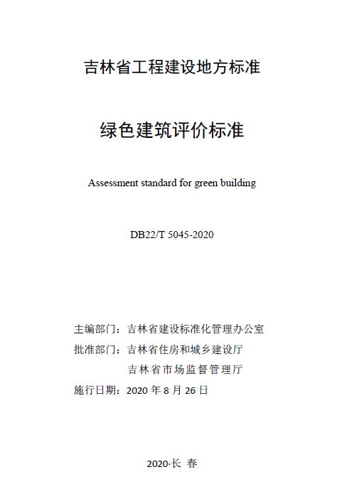 订单名称:DB22/T5045-2020绿色建筑评价标准