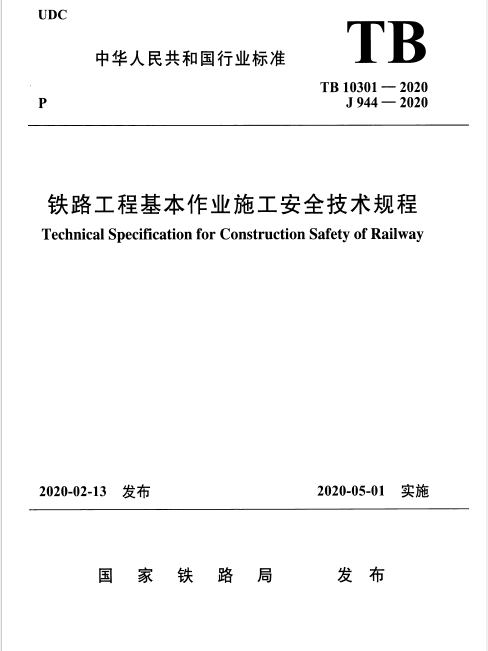 TB10301-2020铁路工程基本作业施工安全技术规程