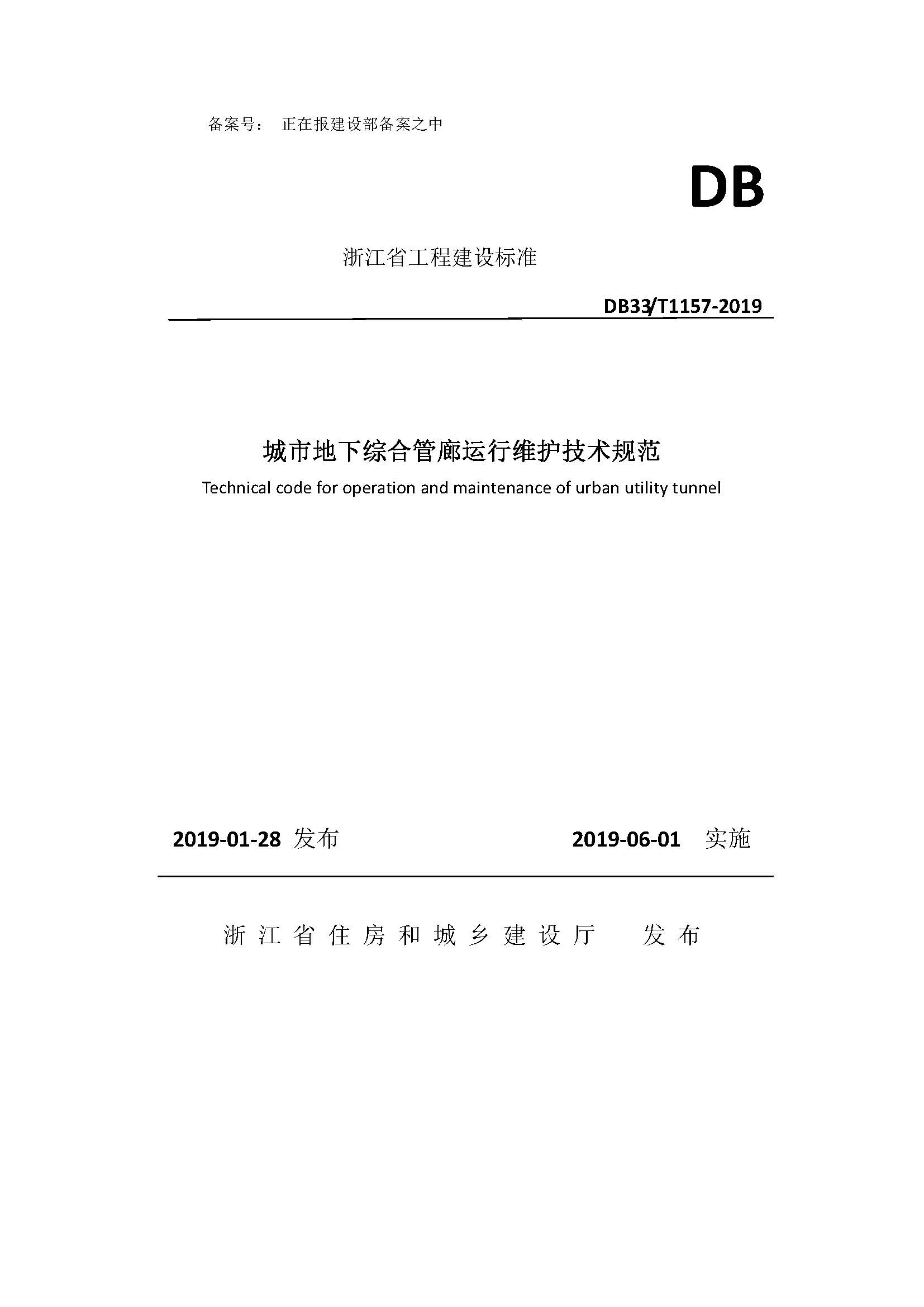 DB33∕T-1157-2019城市地下综合管廊运行维护技术规范