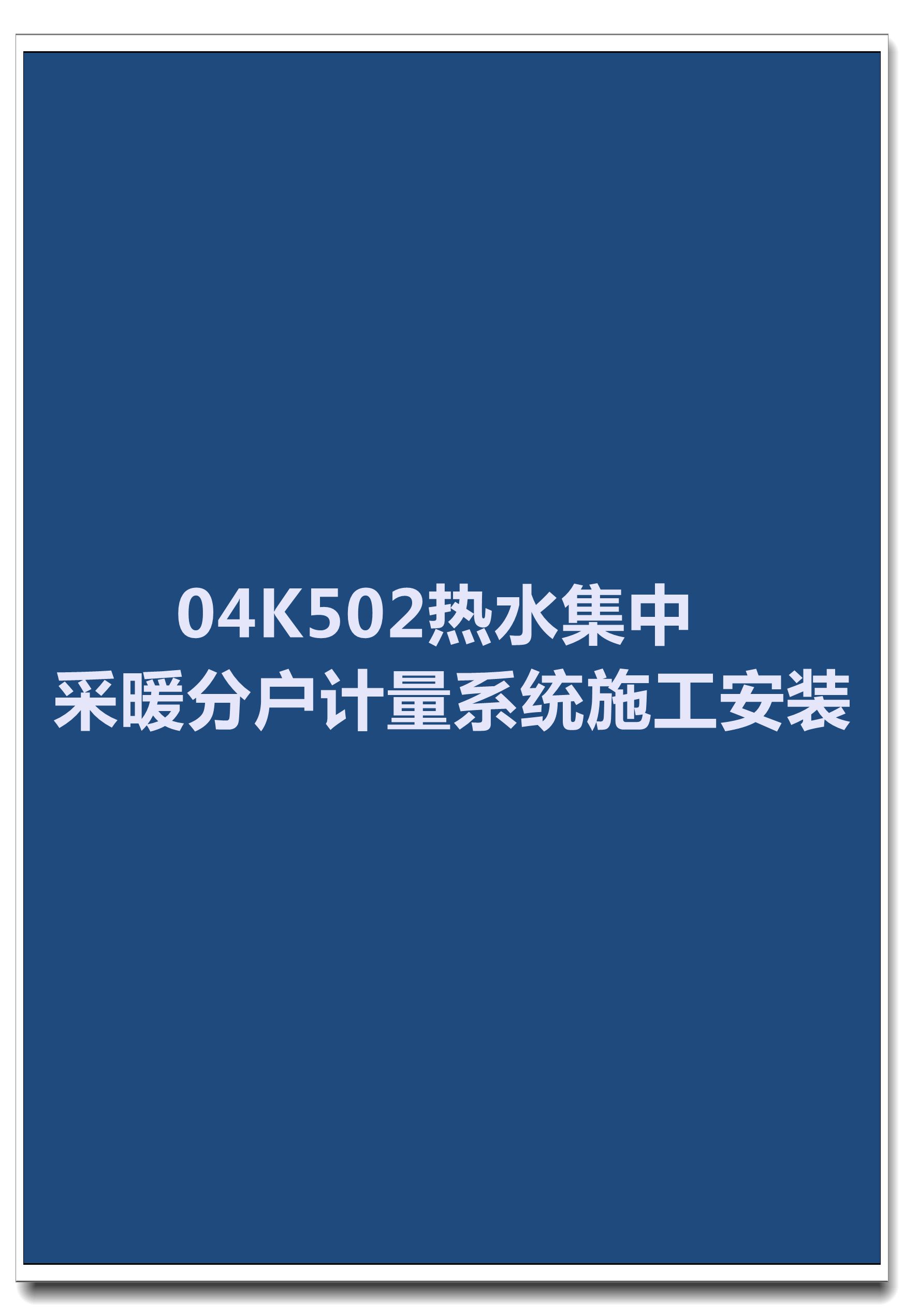 订单名称:04K502热水集中采暖分户计量系统施工安装