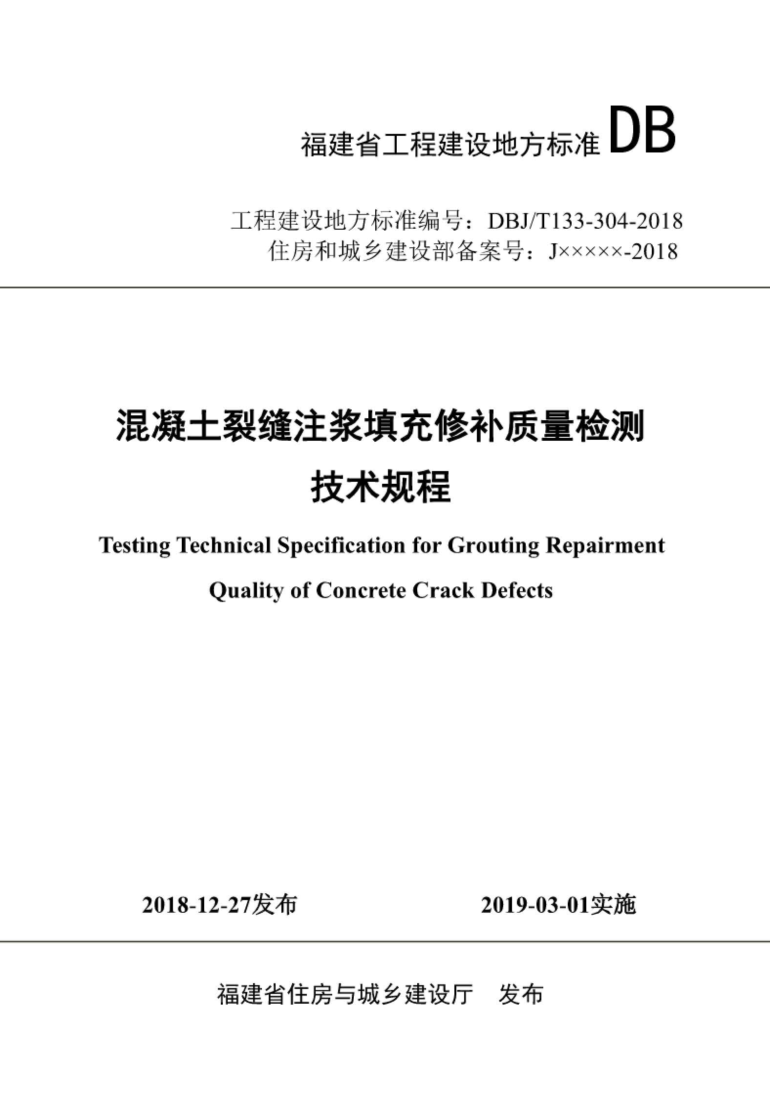 DBJ∕T_13-304-2018_混凝土裂缝注浆填充修补质量检测技术规程
