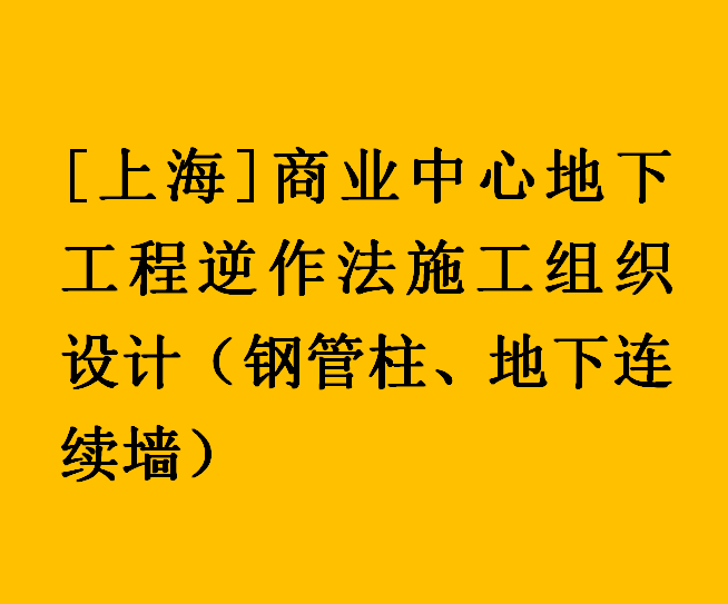 订单名称:[上海]商业中心地下工程逆作法施工组织设计(钢管柱、地下连续墙)